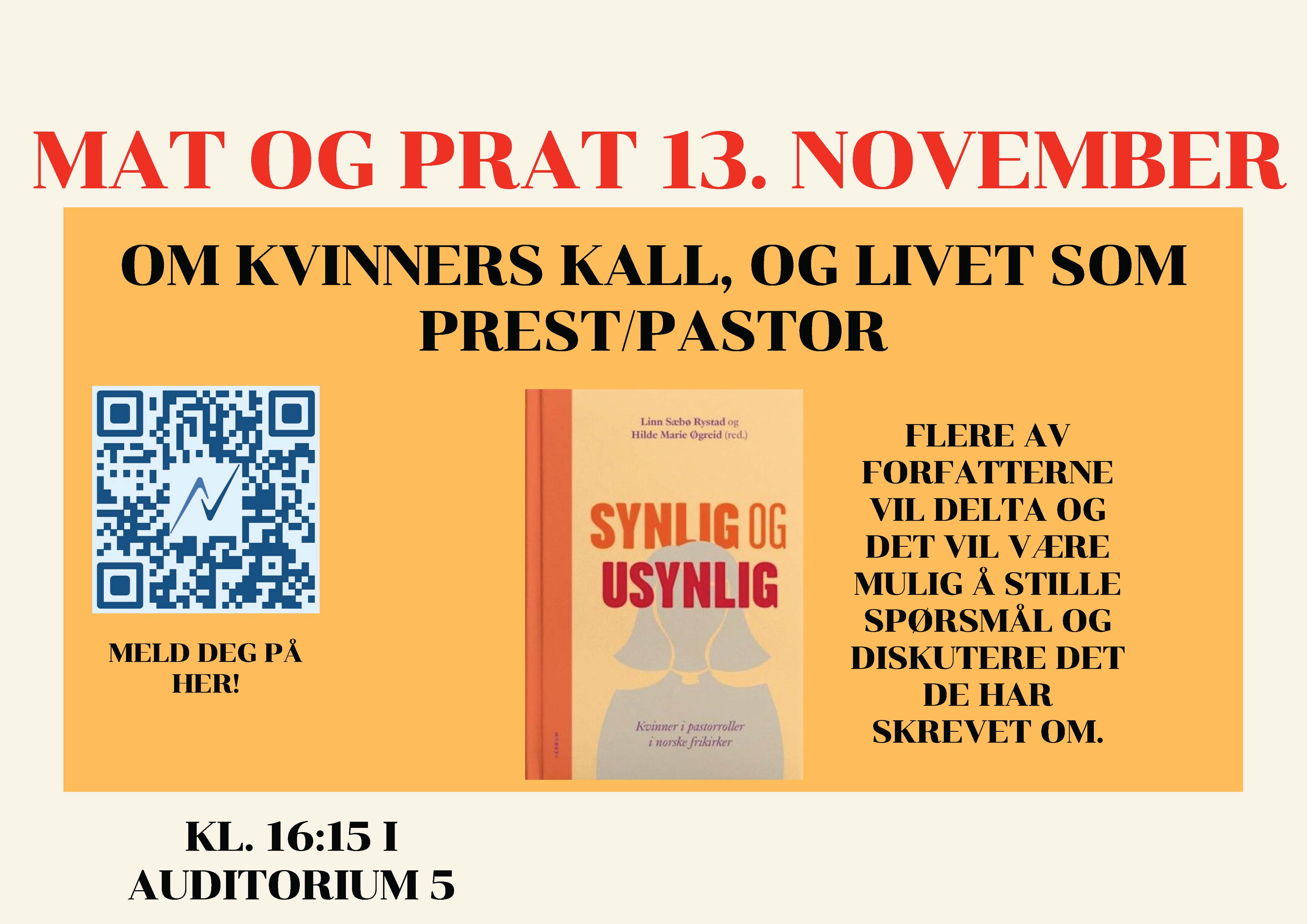Torsdag 13. november kl 16.15 inviterer studentprestene til mat og prat om tema. Flere av forfatterne vi delta og det vil være mulig å spørre om hva du vil og diskutere det de har skrevet om.